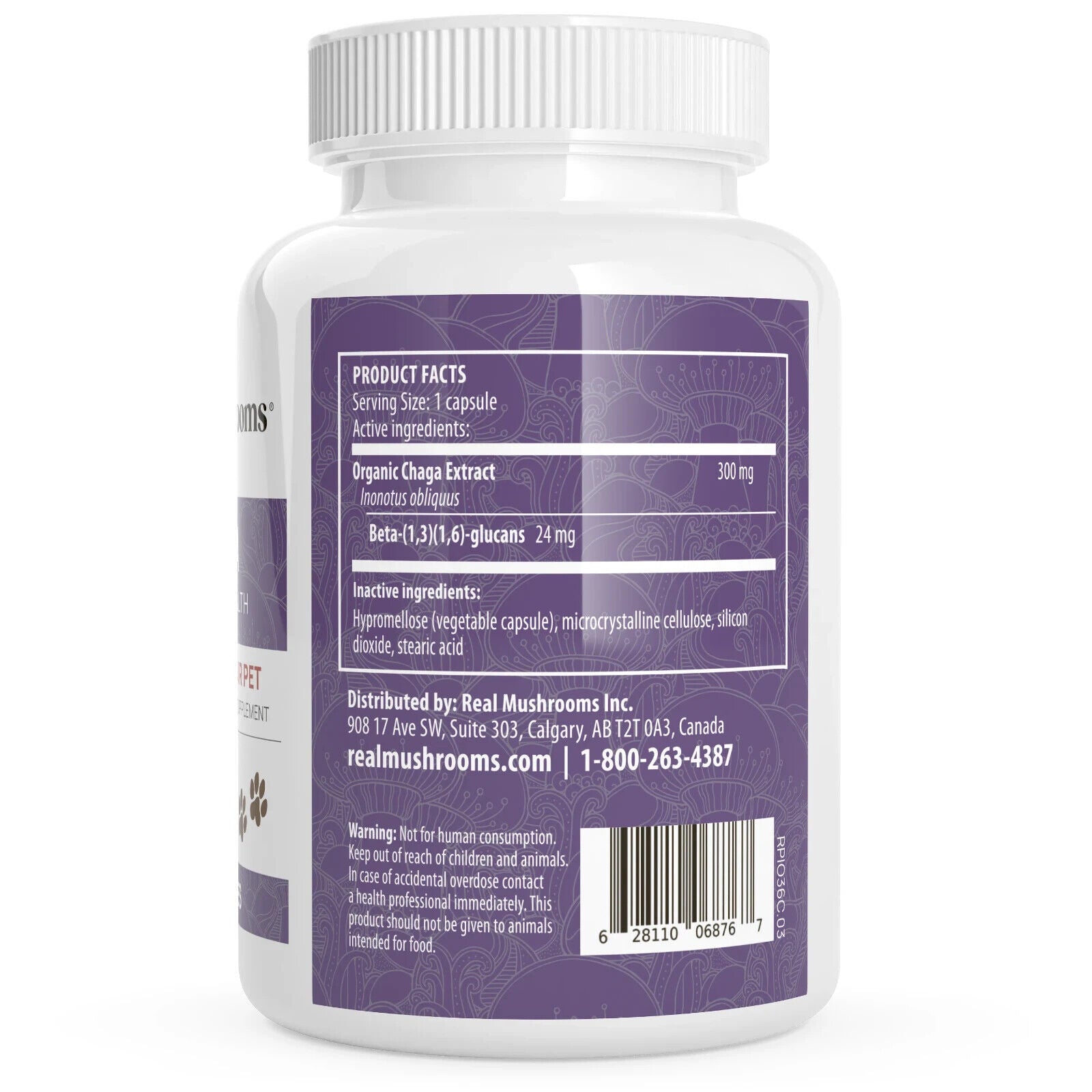 Real Mushrooms Organic Chaga Extract Capsules for Pets Non-GMO 120 Chews NEW