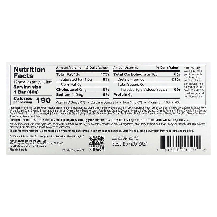 加州黄金营养食品蔓越莓杏仁嚼劲十足格兰诺拉麦片 12 条 480 克 全新
